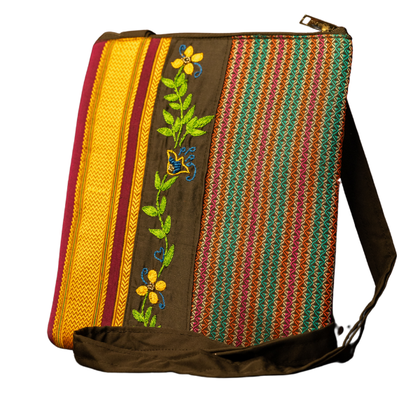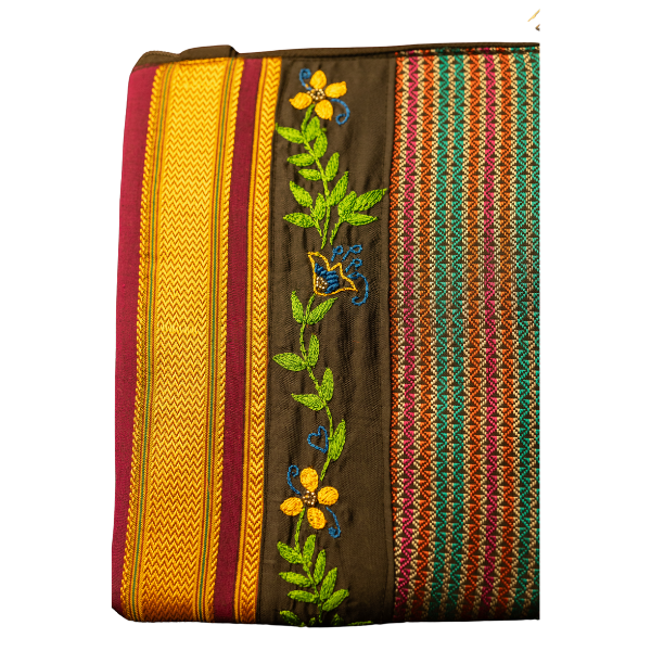 CompareThis handcrafted sling bag is made from a blend of Khan and Polestar fabric, featuring beautifully designed Aari hand embroidery. It has one main compartment and an inner zip pocket for added security. The bag comes with a long, adjustable handle for customized comfort.